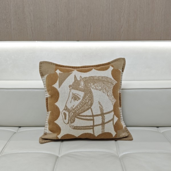 에르메스 신상품 캐시미어 울 쿠션 [cheval 조커 쿠션] 자카드 패브릭 뷰티풀 울 쿠션 핸드메이드 스티치 장식, 디자이너 잔파올로 파니 사이즈: 50*50cm 소재: 울90%+캐시미어10%