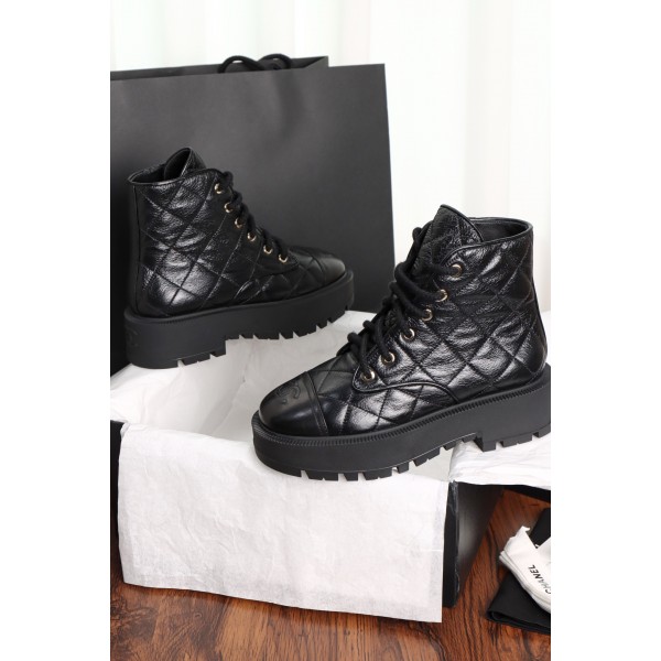 샤넬 24A 흑색 아가일 체크 앵클부츠 클래식 퀼팅 자체 질감 굵은 뒤축으로 걷는 것이 듬직함 데일리 통근 쇼핑에도 잘 어울려요
