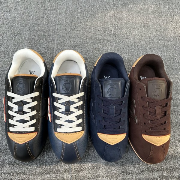 루이비통 남성 크리에이티브 디렉터 파렐 LV 버터소프트 양가죽, 소가죽 및 패딩 슈즈가 부드럽고 편안한 착용감을 선사함 LV 레터링, 루이비통 가죽 요소 Pharrell Williams 초상화 및 랍스터 패턴 엠보싱이 2025 가을/겨울 남성 쇼의 주제를 반영함 EVA 겉면에 브랜드 아이덴티티가 들어가 있음