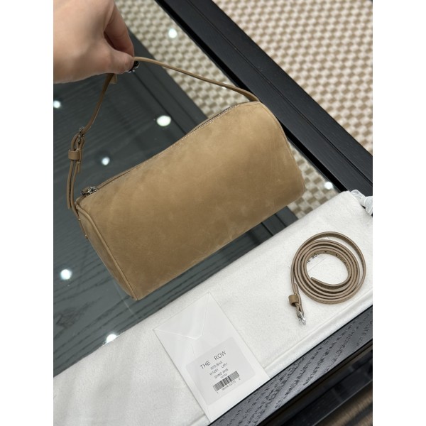 THE ROW 90S BAG 이 가방은 바로 이완감을 대표하는 파우치백 심플한 라인과 매끄러운 가죽 소재가 모던한 느낌을 주며 떠벌리지 않고도 시선을 사로잡을 수 있는 가방 수입 누벅 원단으로 섬세하고 하늘하늘 긴 숄더 끈이 있어 크로스도 가능 Size;19x7x11cm