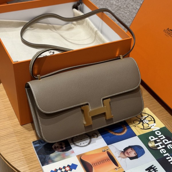 Style:Constance Elan Colour:18/Etoupe Size:24*14*8cm Leather:Epsom From France Hardware:Gold 콘스탄스 엘란 24, 코끼리 그레이, 프랑스 수입 순정 소가죽 손바닥 무늬 앱송가죽, 골드 버클, 고급 수제 맞춤 제작 주문 실사