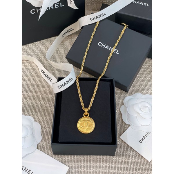 샤넬 빈티지 원형 목걸이 유일하게 진짜 모델로 ZP를 구매하여 개발 ZP 일치 신주 소재 목걸이 체인 길이 약 48CM, 펜던트 지름 약 2.5CM