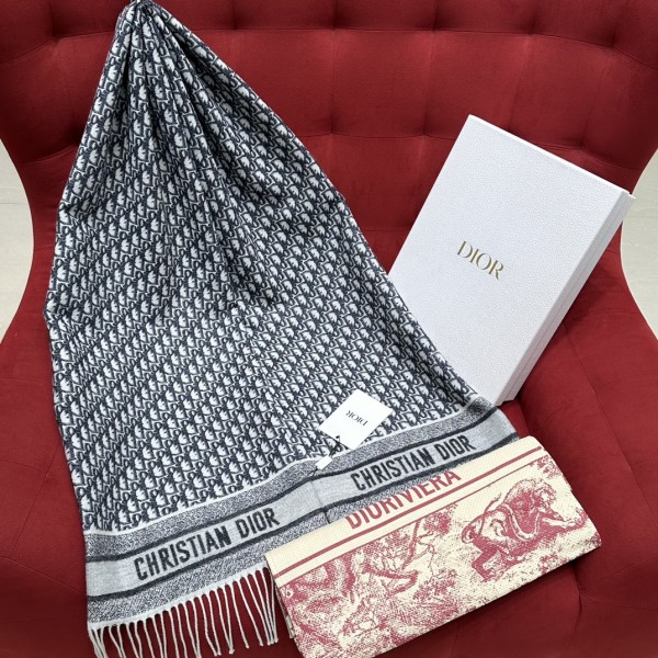 디올 초실용적인 양면 태슬 머플러 한쪽은 솔리드 컬러 다른 한쪽은 클래식한 오블리크 프린지 롱 디자인 두께감 적당하며 숄로도 연출 가능한 세련되고 우아한 캐시미어 100% 터치감이 부드럽고 섬세하며 고급스러운 아이템 사이즈: 45cm*200cm