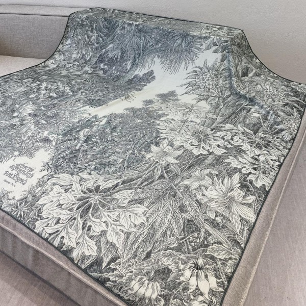 에르메스 팔레모 식물원 140 케이프 아름답고 다채로운 정원으로 이탈리아식 장관을 이루고 있음 다양한 지중해 종과 열대 식물이 무성하고 장관을 이루고 있으며 울창한 용나무 가지와 잎, 종려나무, 철나무 사이에는 18세기의 낭만주의 건축 구조가 은은하게 드러나 있음 팔레르모 식물원에 들어선 프랑수아 우딘(Frangois Houtin)은 신비로운 바로크 녹지의 전당을 오랫동안 거닐며 아름다운 광경을 연출했음 소재: 캐시미어70%, 실크30% size: 140×140cm