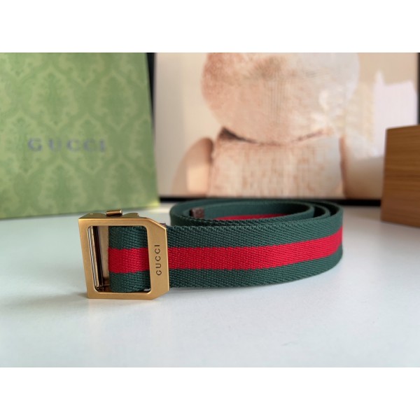 구매 대행급 Gucci 22FW 직사각형 버클 적록색 직조 띠 벨트 패션 디자인의 서사 이념과 승마의 연원을 긴밀히 연결함 이 컬러 벨트는 이 클래식한 스트라이프 요소를 사용했음