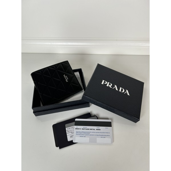 프라다 남성 블랙 펄 가죽 반지갑 펄 압박 소가죽으로 제작 사이즈 11 X 9.5cm 175 스틸인쇄, 세밀한 작업