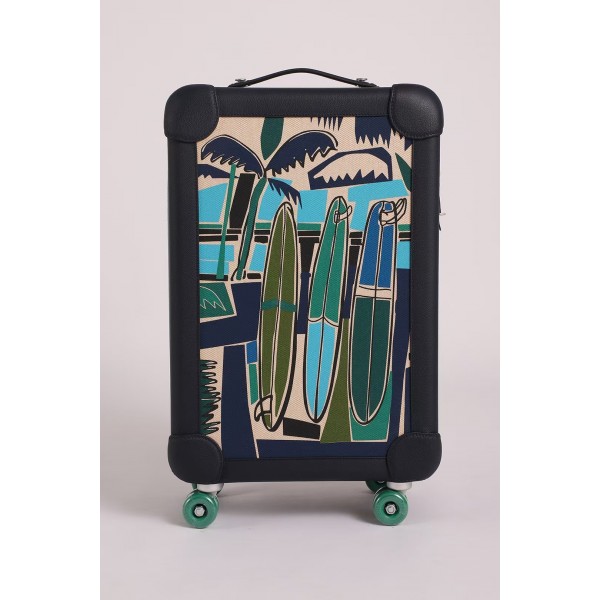 에르메스 R.M.S 컬렉션 맞춤 기내용 캐리어 단거리 휴대, 회전식 신축 손잡이에 적합하며 필요한 높이 조절 가능, 4개의 유연한 고무 풀리 외측 지퍼 포켓, 가죽 모서리 보강, 스터드 고급스러운 질감과 강력한 기능성을 절묘하게 조화 사이즈: 35x57x20cm