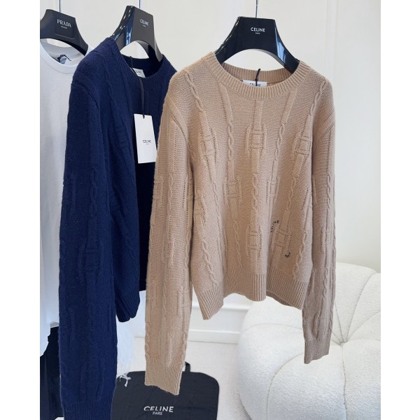 CELINE 2025 가을과 겨울의 새로운 개선문 트위스트 스웨터 100% 울로 부드럽고 섬세하며 입체적인 트위스트 무늬와 개선 로고 자수 라운드 네크라인으로 심플하게 매치되어 출퇴근은 물론 모임까지 부담없이 소화가능 연한 베이지 컬러의 부드러운 분위기에 네이비 컬러의 차분하고 대범한 분위기로 어디에나 잘 어울림 데님 팬츠나 스커트에 매치하시면 부담없이 고급스럽게 연출