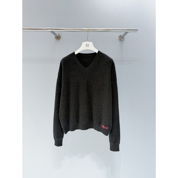 로에베 25 가을 겨울 자수 로고 디자인 브이넥 니트 스위스 기계 부클 18핀 공법 고운 울 100% 보송보송한 질감으로 부드럽고 편안하며 맞춤 자수 패턴으로 스타일리시하게 클래식한 핏으로 날씬해 보이면서 코디하기 좋아요 완벽 제조 품질 디테일