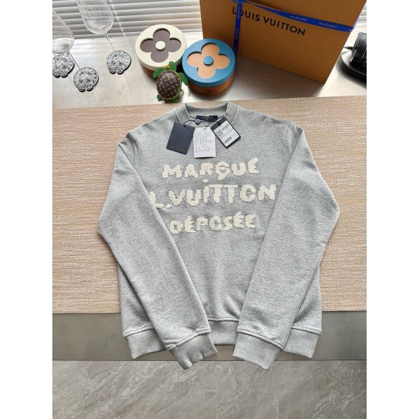 Louis Vuitton 25FW 수용성 자수 레터링 라운드 맨투맨 ZP 11300 구매 분해 제작 맞춤 제작 그레이 100% 순면 원단 앞뒷판 장식 LV 자수 레터링 로고 골지 소매 밑단 고정, 초밀도로 부분 짜임 진정한 1:1 copy