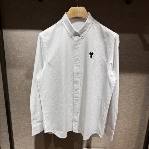 아미 신상 패션 아이콘 로고 디테일 옥스퍼드 셔츠 명버튼으로 매치하기 좋으며 옥스퍼드 쭈리 원단 진주 모조개 단추로 원단 질감이 좋음