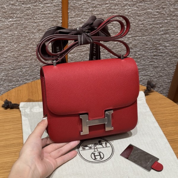 Style:Constance Colour:Q5/Rouge Casque Size:19*15*4cm Leather:Epsom From France Hardware:Silver 콘스탄스19(거울타입), 국기레드 프랑스수입 순정 소가죽, 실버버클, 고급 수제 전용 맞춤형 주문 실사