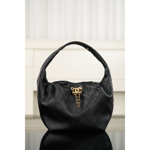 샤넬 26C 스트링 호보 핸드백 가장 기대되는 호보백, 고급스러움 가득 독특하고 나른한 실루엣과 정교한 공예 편안함과 럭셔리의 완벽한 균형을 재정의 송아지 가죽 소재는 부드럽고 섬세함 트임 스트링에 더블 C버튼과 25백과 같은 디자인으로 돋보임 캐주얼에서 우아함까지 완벽한 동반자 모델번호 AS5976 사이즈: 20x22x12cm