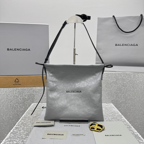 발렌시아가 쇼퍼 더스트 백 셔링 질감의 원단에 심플한 브랜드 레터링 로고를 매치 블랙과 그레이의 투톤 컬러는 차가운 느낌을 주며 스트링 묶음 디자인은 자유롭고 실용적 숄더, 크로스 모두 느슨하게 연출 가능 캐주얼 티셔츠는 물론 트레이닝 세트까지 스타일링 사이즈: 바닥길이 26x높이 26cm