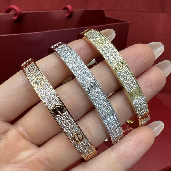 까르띠에 러브 (Cartier LOVE) 컬렉션 별 팔찌 18K 로즈 골드 플래팅 소재에 큐빅 세팅으로 빛나는 별 오버핏 핏으로 무게감 있게 착용 가능 아이코닉한 나사 디자인으로 사랑의 견고함과 영원을 상징함