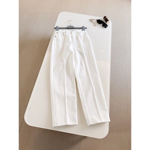 셀린느 26S 화이트 워싱 데님 9부 팬츠 클래식한 스트레이트 컷팅 하이웨스트 디자인에 백 와펜 디테일로 9부 롤업 길이가 적당하며 발목까지 드러나면서 다리라인을 시각적으로 늘려주는 스타일리쉬한 아이템