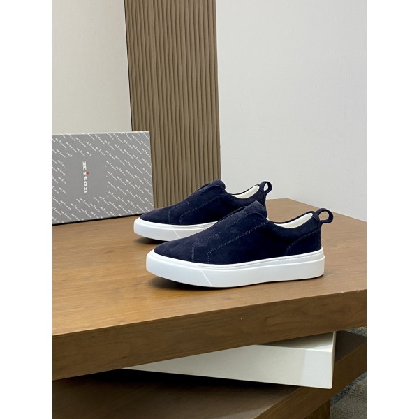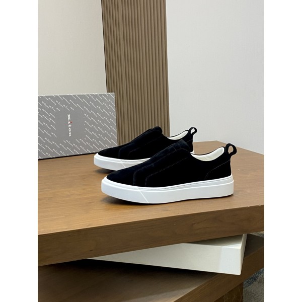 키톤 프리미엄 남성 워싱 데님 원단 스립온 스니커즈 바닥은 반폴라 송아지 가죽으로 일체 성형 공법으로 제작 화이트, 스무딩 효과 밴딩 루프백, 굽 대비 루프, 고무창, 발목 패딩 안감: 송아지 가죽 밑창 성분 : 재생 고무