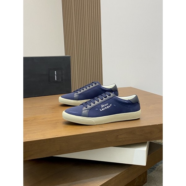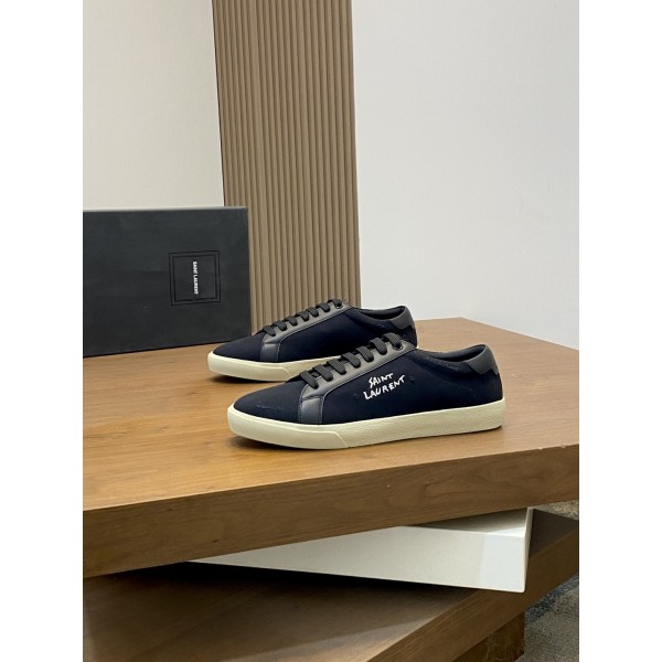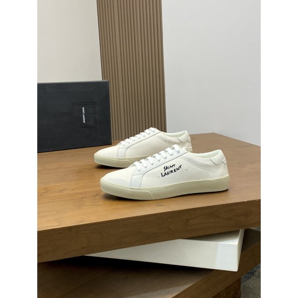생로랑 가죽 스포츠 사이드 자수 로고 스니커즈 앞코 스트랩, 라운드 헤드, 고무 플랫, 깔창 브랜드 로고 겉감: 캔버스 + 송아지 가죽 안감: 송아지 가죽 밑창성분 : 고무
