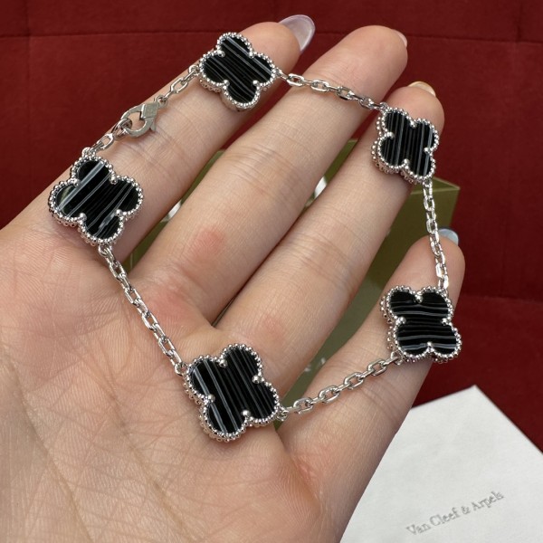 VCA 25 한정 맥문 오닉스 삼겹살 팔찌 그냥 흑마노가 아니라 아주 희귀한 맥문 오닉스 그것의 아름다움은 독특한 질감에 반영되어 있으며 마치 깊고 끝이 보이지 않는 밤하늘처럼 자연스럽게 연기처럼 하얀 실크 솜털 모양의 정맥 무늬를 형성하여 반쯤 비치는 느낌이 들어 매우 고급스러움 모든 줄무늬는 유일무이하여 복제할 수 없음 뱅글 블랙 실버 배색 진짜 yyds 너무 클래식하고 분위기 넘버원