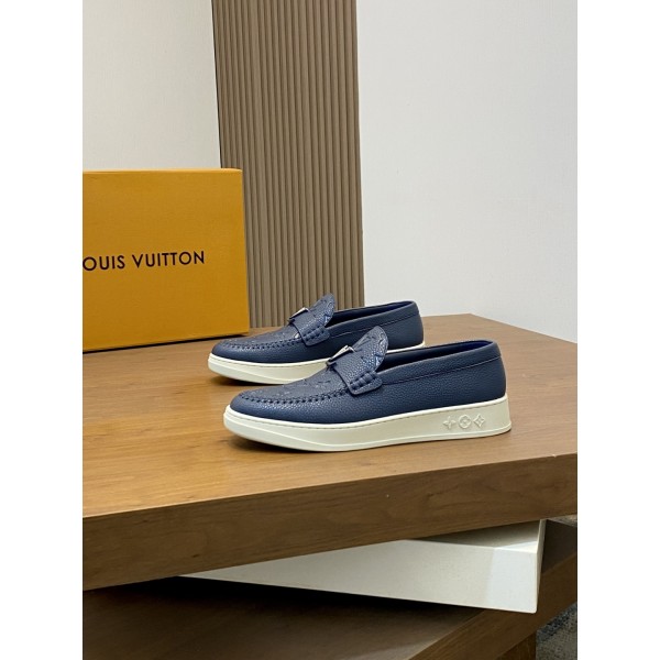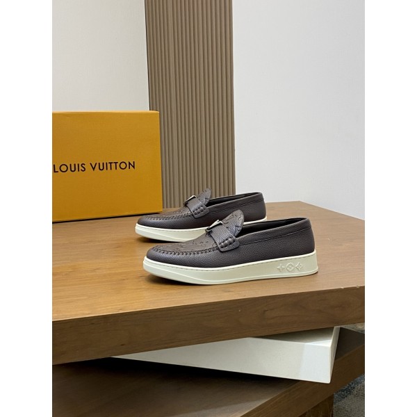 LV 신상품 남성용 고급 로퍼 스니커즈 수입 톱 소가죽 브랜드 lougou 오리지널 초경량 tpu 바닥, 내마모성 편안함 Monogram lougou 포인트 고무 아웃솔 통기망 안감, 클래식한 스타일