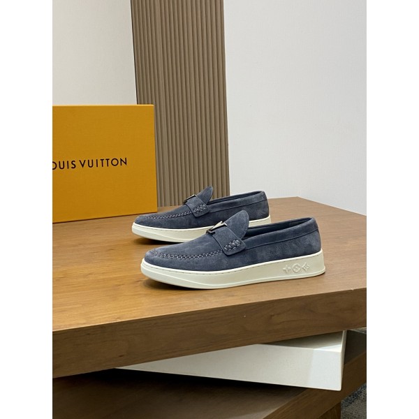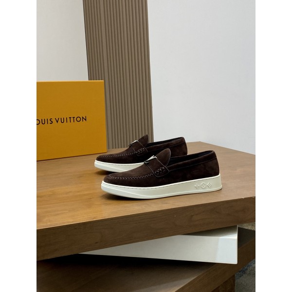 LV 신상품 남성용 고급 로퍼 스니커즈 수입 톱 소가죽 브랜드 lougou 오리지널 초경량 tpu 바닥, 내마모성 편안함 Monogram lougou 포인트 고무 아웃솔 통기망 안감, 클래식한 스타일