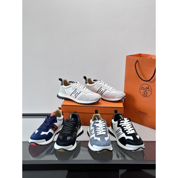 Hermes Mix Runner 운동화 스웨이드 + 소가죽 패치, 측면 H 로고 고무창은 접지력이 좋아 편안한 착용감으로 데일리나 가벼운 운동 모두 OK 뒷굽 블랙 레더 스트랩으로 신고 벗기 편함