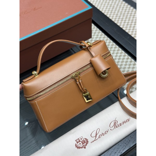 로로피아나 골드브라운 엑스트라 포켓 백 23 소가죽 소재로 부드럽고 도톰한 촉촉한 내추럴한 텍스처가 돋보임 바디에는 투웨이 지퍼와 24K 골드 플래팅 잠금 장식이 있으며 투웨이 조절 버클 스트랩에는 탈부착 및 교체 가능한 2개의 입체 펜던트가 장착되어 있음 매장의 새로운 축소판으로 크기가 정말 적당하여 휴대폰과 소지품을 모두 넣을 수 있음 클래식 19보다 세련된 라인, 토트와 크로스 조절이 가능 순정 소가죽 + 배아 전기도금 24K 철물 액세서리 Size: 23x12x7cm