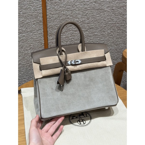 Style:Birkin Grizzly Colour:Gris Caillou/18/Etoupe Size:25*20*13cm Leather:Grizzly and Swift From France Hardware:Silver 버킨 그리즐리 25cm, 암석회/코끼리회 프랑스 수입 순정 소가죽/평직, 실버버클 프리미엄 올핸드메이드 전용 커스텀 핸드메이드 못, 핸드메이드 철물, 정강 도금 18k 철물 주문 실사