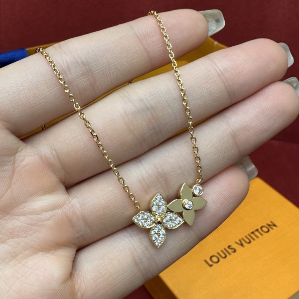 LV 더블 플라워 펜던트 목걸이 클래식한 플로럴 요소, 한 송이 가득 한 송이 싱글 스톤, 작은 송이 다이아몬드로 포인트 심플하고 우아하며 또렷한 아이덴티티