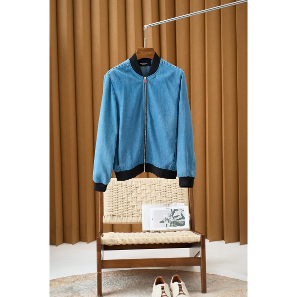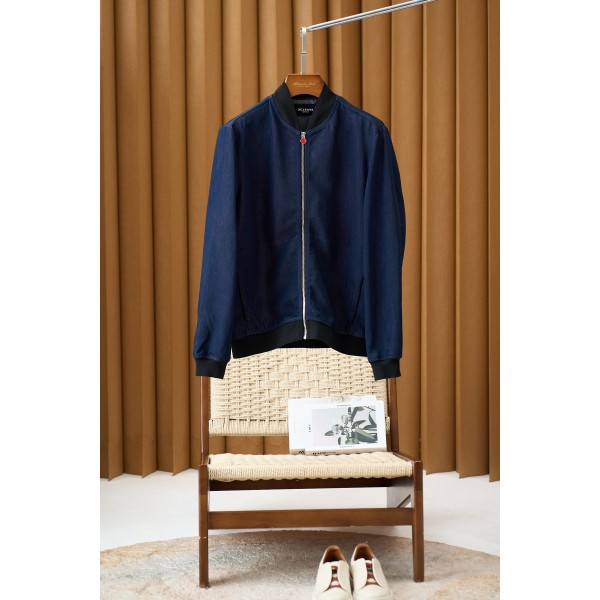 키톤 클래식 야구점퍼 스타일 데님 자켓 고품질 100% 순면 소재를 사용하여 두툼하고 부드러우며 통기성과 편안함이 좋아 착용 시 더욱 편안함을 느낄 수 있음 디자인은 깔끔하고 단정하며 클래식한 야구 넥 스타일로 블랙의 골지 목선, 소매 끝단, 밑단을 매치하여 층감 있는 입체감을 더했고 지퍼 여밈 방식으로 입고 벗기 편하며 레드 컬러의 지퍼 헤드는 전체적으로 밝은 컬러를 더해주어 포인트 바느질이 깔끔하고 섬세하여 고품질의 공정을 보여줌