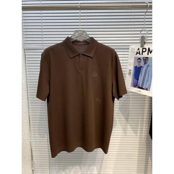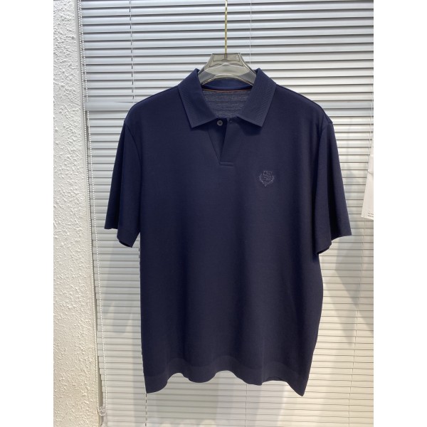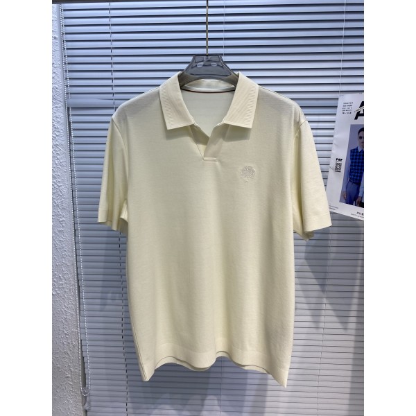 로로피아나 브이넥 원단추 남성 니트 반팔 폴로 셔츠 품질 관리 추천 클래식한 스타일링 매끄럽고 세련된 디자인과 원단의 조화가 돋보이고 브이넥 타입은 밑단의 폭이 좁고 탱탱한 네크라인에 신경을 많이 씀 가장자리는 촘촘한 짜임으로 얼굴형의 시각적인 미세함을 잘 잡아줌