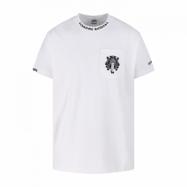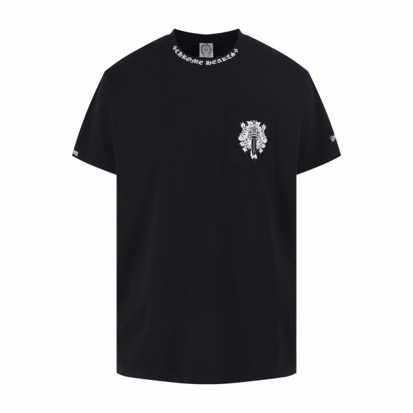 크롬하츠 보검 프린트 포켓 반팔 티셔츠 수입 특수 공급 중량 순면 원단을 사용하여 두껍고 단단하며 부드러운 터치감과 피부 친화력 우수한 통기성 및 변형 저항성 장기간 착용 시 보풀이 쉽게 변형되지 않음 티셔츠의 품질과 실용성을 보장함 가장자리 장식은 고딕체 프린팅 브랜드 로고 선은 선명하고 깔끔하며 단조로운 색상의 미학을 깨뜨리고 왼쪽 가슴에는 사각 스티커가 설치되어 있으며 몸체는 브랜드의 클래식한 비수 플라워 프린팅으로 정교하고 흑백 배색은 매우 식별도가 높으며 옷 뒷면은 고딕체 프린팅의 작은 면적에 대응