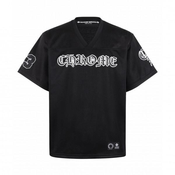 크롬하츠 아이스하키 메쉬 반팔티셔츠 이중 속건성 폴리 스판 통기 메쉬 원단 전신 앞뒷면 목선 포함 총 7개의 본드 프린팅 공법 필린 반복 스크래치 내추럴 12개 메쉬 블랙&화이트 교차 프린팅 밑단 자수 스몰 라벨 맞춤