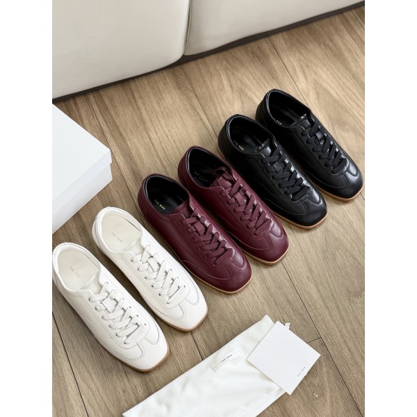 The row, 완산 최상급, 홈페이지 동시 2026 봄여름 신상 트렌디한 빈티지 미니멀 스트랩 캐주얼 스니커즈 겉감은 수입 소가죽 안감 깔개로 양가죽 혼종 보송보송 고무 몰드창 + 리얼 가죽 스트랩 조합 미끄럼 방지 및 내마모성