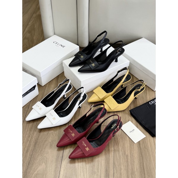 셀린느 정단, 최상급, 홈페이지 동시 2026 봄여름 신상 스타일리쉬한 고양이 굽 버클 백 슬링백 겉감 수입 맞춤 양가죽, 안감 깔개 양가죽으로 부드럽고 섬세하며 이태리 리얼 가죽 밑창 굽 4.5cm