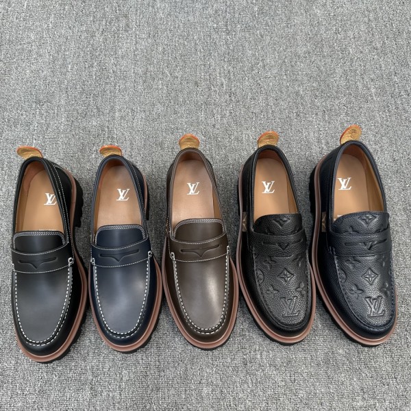 루이비통 클래식한 REMIX 로퍼 디자인의 정수를 트렌드를 선도하는 트렌디한 외관 매끄러운 소가죽의 앞면은 풍부한 디테일로 더욱 돋보이며 루프 밴드와 키 지갑은 루이비통의 클래식한 가죽에서 영감을 받음 밑창이 튼튼하고 가벼움을 잃지 않음 고무 아웃솔에 바닥 볼록 장식에 LV 이니셜과 모노그램 플라워