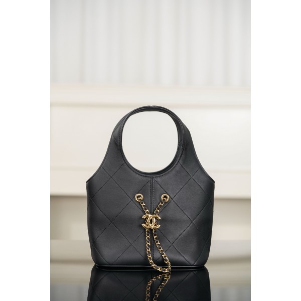 샤넬 26P 시리즈 스몰 쇼핑백 블랙골드 모델번호: AS6132 클래식한 아가일 무늬 송치가죽 메탈 더블 C버튼으로 조절이 가능하며 핸드 오일 테두리와 안쪽에는 파우치가 겹겹이 들어가 있어 실용적이며 편안한 생활과 분위기 메이커 사이즈: 27.5x21x10cm