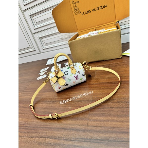 루이비통 무라카미다카시 나노 스피디 크로스백 모델번호: M13391 품질 9차 업그레이드, 수입 순정 가죽. 매장 동시 동적 전자 칩, 선물 봉투, 보호지, 동판 전자 라벨, 합격증 가죽은 정품 OEM 이태리 A급 수고가죽 품질, 철물, 원단, 핸드메이드, 오일펜슬, A급 제품 촬영 사진 및 제품 일치, 사진 상의 전체 패키지 사이즈: 16x10x7.5CM