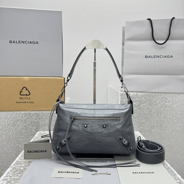 발렌시아가 르 씨티 모토백 스몰 클래식은 유행에 뒤떨어지지 않지만 혁신적이면서도 트렌드를 선도할 수 있는 새로운 Moto 스타일링 클래식한 류딩과 프린지, 위트있는 왁스 가죽 새로운 가방 모양에 포인트를 주었음 탈부착이 가능한 긴 숄더 스트랩과 크로스도 세련되게 연출 사이즈 : 밑창길이 29x높이 19x폭 12cm