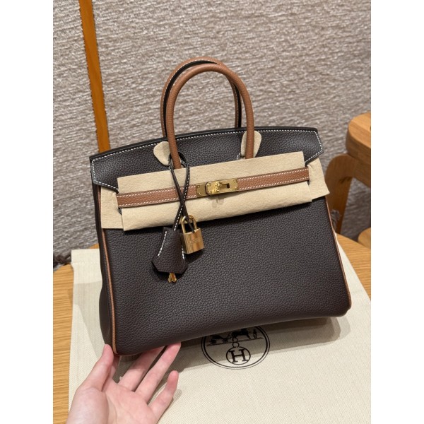 Style:Birkin Colour:47/Chocolate /37/gold Size:25*20*13cm Leather:togo From France Hardware:gold 버킨백 25cm, 초콜릿 블록 브라운 프랑스 수입 순정 소가죽 토고, 골드 버클 고급스러운 풀 핸드메이드 전용 커스터마이징 핸드메이드 못, 핸드메이드 철물, 정강 도금 18k 철물 주문 실사