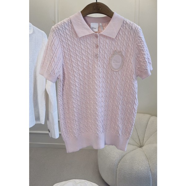 Dior 2026 신상 핑크 꽈배기 니트 폴로 셔츠 벚꽃 배색 초부드러움, 울과 면 혼방 소재로 통풍이 잘되고 신축성이 있어 봄여름에 입기 너무 편함 클래식한 폴로넥+꽈배기 결로 빈티지하면서도 가슴 자수 배지도 절제되어 고급스러움 버튼 디테일이 세련되어 소녀스러움과 고급스러움을 겸비 데이트, 통근, 데일리 모두 잘 어울려요