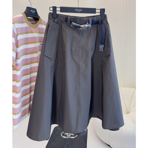 프라다 26 뉴 빈티지 올리브 그린 우산 스커트 재생 나일론 소재로 가볍고 힘있게 떨어지는 핏이 만점 하이웨스트 디자인 + 탈부착이 가능한 기능적인 벨트 메탈 버클과 스트랩 디테일로 카고 감각이 뛰어나며 실용적 양쪽에 큰 포켓이 있어 편리할 뿐만 아니라 캐주얼한 무드 통근 데일리에도 부담없이 소화가능