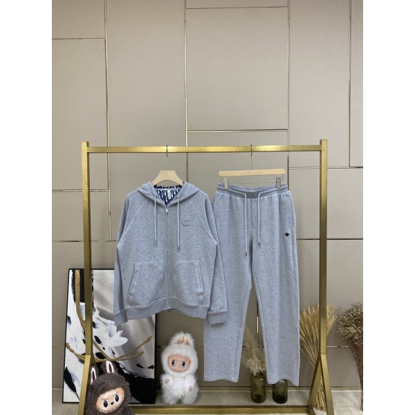 디올 지소면 하치비 후드점퍼 + 팬츠 세트 귀한 커스텀급 코튼 면 그레이 혼방 니트 원단으로 정교하게 제작 앞부분은 CD로고 자수, 뒷부분은 작은 꿀벌 무늬로 정교하게 자수 후드 안쪽은 전체적으로 Oblique 프린팅 캥거루 포켓으로 캐쥬얼하고 스타일리쉬한 스타일링을 완성
