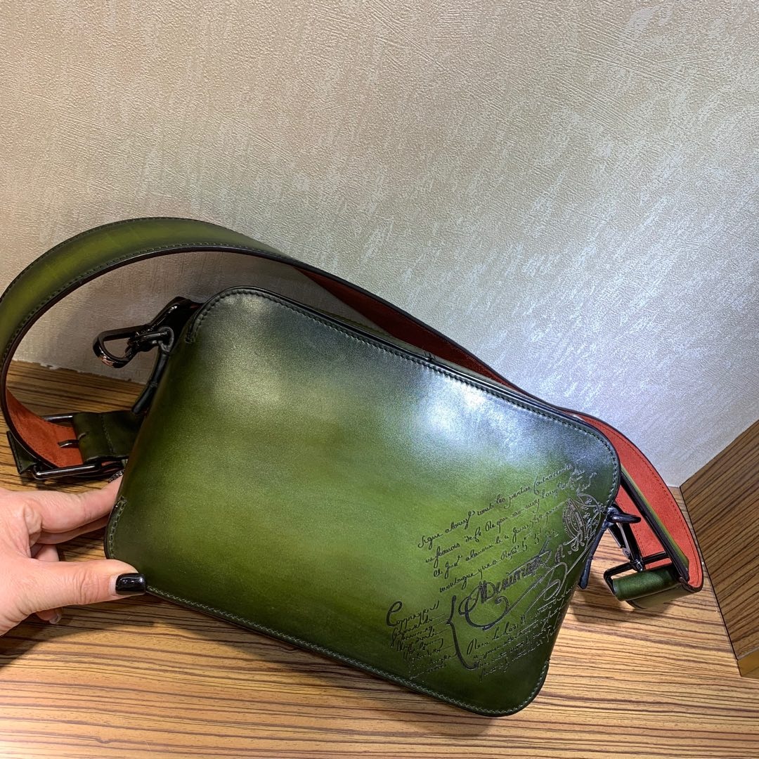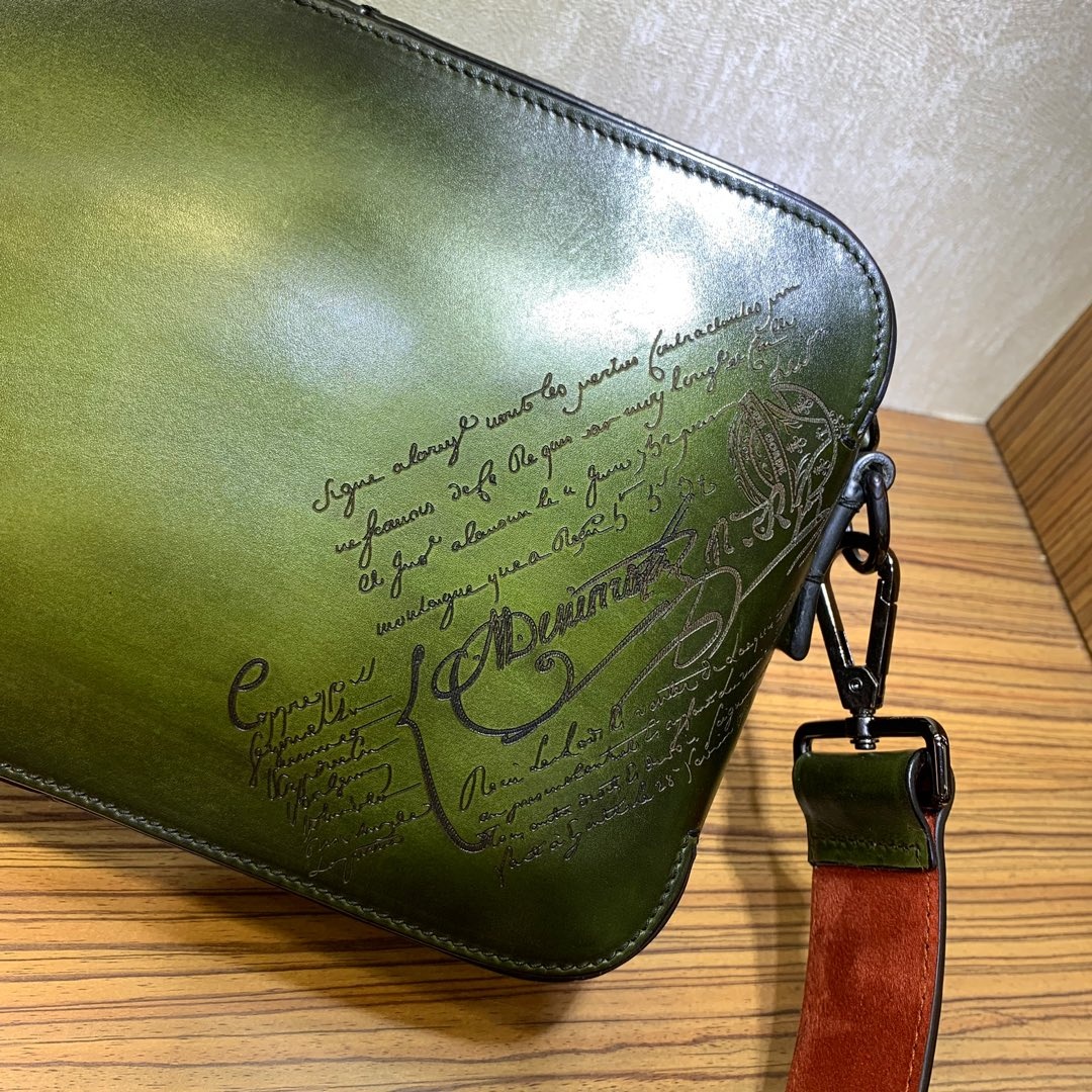 Berluti Profil Clutch 미니 메신저백 브랜드만의 베네치아 송아지 가죽으로 컬러감이 독특하며 겉면 한쪽에 새겨진브랜드 클래식한 Scritto Swift 패턴으로, 스트랩 조절이 가능한 세련된 클러치백으로 다양한 룩을 연출해 줍니다.프로필 클러치 크로스백은 이미 벌루티 옷장에서 빼놓을 수 없는 패션 아이템으로 자리 잡았다.슬림하고 가벼우며 내부 칸막이의 절묘한 디자인으로 기능성과 실용성이 뛰어나 소지품과 신용카드 여러 장을 깔끔하게 수납할 수 있습니다. 외부 특징 : 지퍼 덧댐, 프론트 포켓에 지퍼 클로징 내부 특징 : 플랫 포켓 하나, 카드 홀더 하나, 지퍼 포켓 하나, 긴 어깨끈 휴대:토트 또는 크로스