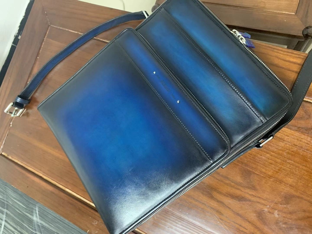 BERLUTI M Miles Leather Messenger 메신저백 클래식 베네치아 송아지 가죽(컬러 변환), 맞춤형 버루티 철물 카드, 순수 천연 고법 핸드메이드컬러링 세공 데일리 출장 필수 아이템! 외부 특징 : 지퍼포켓 2개, 스냅, 플랫포켓 1개 포함 어깨끈 휴대:점퍼 착용:조절 가능한 가죽 어깨끈
