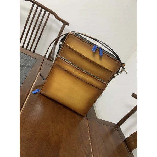 BERLUTI M Miles Leather Messenger 메신저백 클래식 베네치아 송아지 가죽(컬러 변환), 맞춤형 버루티 철물 카드, 순수 천연 고법 핸드메이드컬러링 세공 데일리 출장 필수 아이템! 외부 특징 : 지퍼포켓 2개, 스냅, 플랫포켓 1개 포함 어깨끈 휴대:점퍼 착용:조절 가능한 가죽 어깨끈
