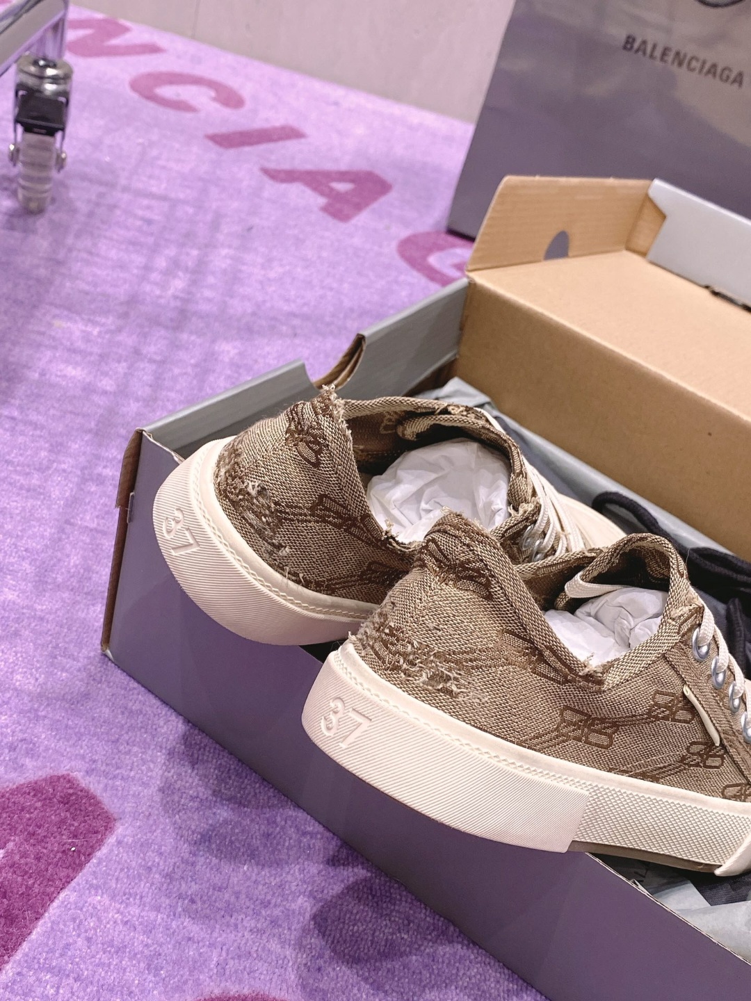 2022년 최신 핫 커플 스타일 발렌시아가 새로운 파리 스니커즈 가장 사랑받는 부츠 스타일은 유행에 뒤떨어지지 않습니다! 새로운 PARIS 스니커즈 구제 빈티지 스타일로 새로운 시각으로 '중고풍'을 연출하는 흑백 레드 클래식 배색 앞코에 브랜드 로고가 프린트된 바디는 구제 물감 공법으로 캔버스로 제작되었으며 오리지널 몰드 빅솔 데일리룩으로 착용하기 좋습니다