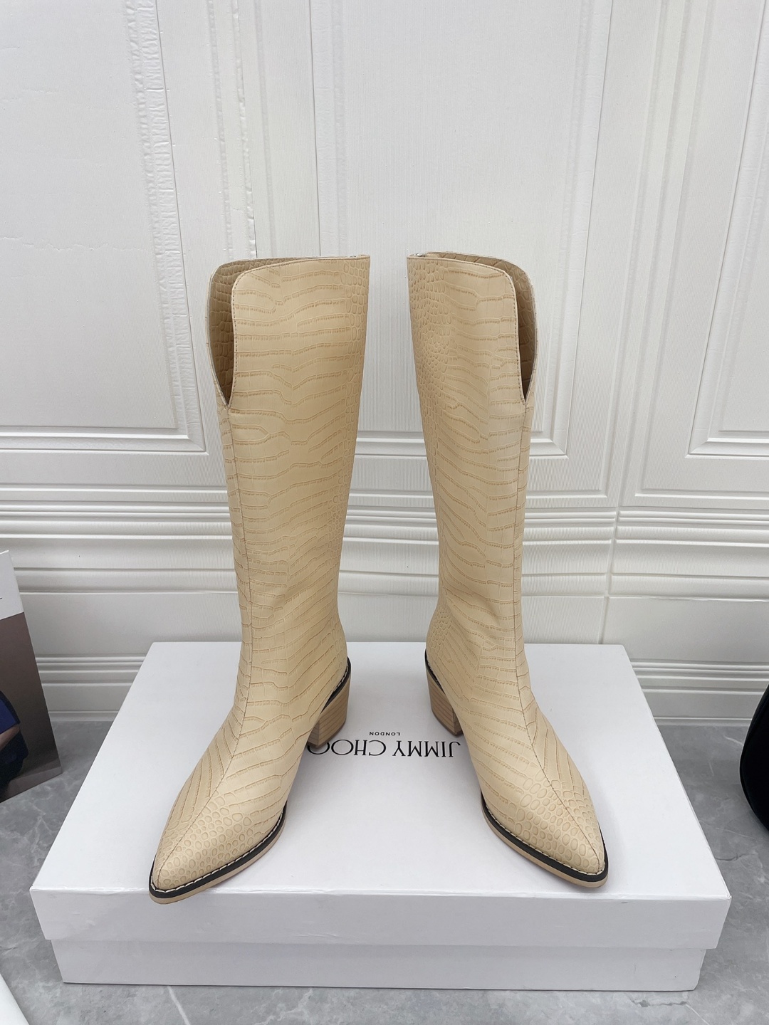 22VS 가을겨울 [구매대행급] 신상 지미추 (엠보싱 스톤 부츠) 오리지널 탑클래스 복각, 초고품질 드립니다 시크하고 스타일리쉬한~신상 단독선발 단연 독보적 전체적인 라인의 매끈함 다리를 쭉 뻗는 타입, 상발의 편안함, 입구의 지퍼백 링크 공법으로 매우 창의적인 디자인으로 고급스러움을 선사합니다... 겉감:수입 엠보 스톤 소가죽 속:수입 양가죽 대저: 원판 1 대 1 조합 대저 굽: 5.5cm 높이로 발에 편안함! 포장 : 오리지널 풀세트