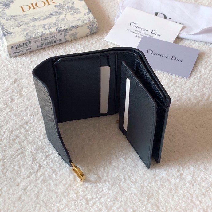 【정품 패키지】【시퀀스 코드 포함】 Dior 안장【크롬】삼단 접이식 반지갑 겉면 커버는 안장 가방의 독특한 스타일링과 디올의 시그니처 D로 장식되어 있습니다. 안에 6개의 카드 슬롯에 1개의 잔지갑 정교하게 제작된 똑딱이마다 Diar 라벨 사이즈 11x8.5cm