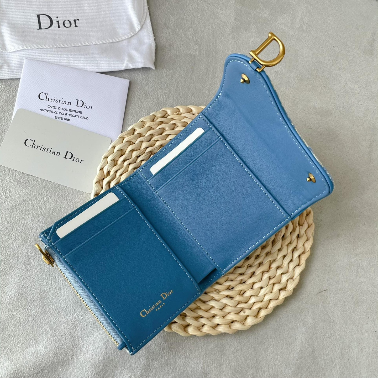 【정품 패키지】【시퀀스 코드 포함】 Dior 안장【크롬】삼단 접이식 반지갑 겉면 커버는 안장 가방의 독특한 스타일링과 디올의 시그니처 D로 장식되어 있습니다. 안에 6개의 카드 슬롯에 1개의 잔지갑 정교하게 제작된 똑딱이마다 Diar 라벨 사이즈 11x8.5cm